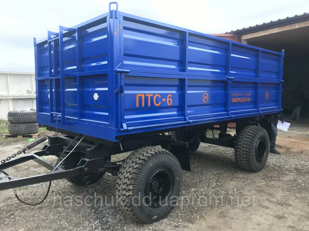 Благодаря надежной и устойчивой подвеске, прицеп 2ПТС-6 может использоваться как в полевых условиях, так и на дорогах общего пользования, а продуманная конструкция бортов позволяет перевозить даже сыпучие грузы (за исключением булыжника и скальных пород).