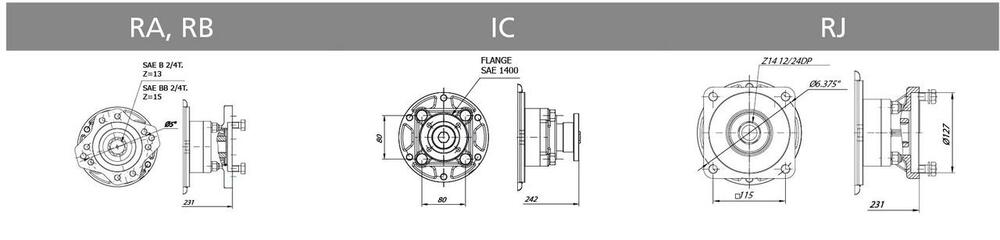 С разными типами выхода (SAE B, SAE BB, ISO).