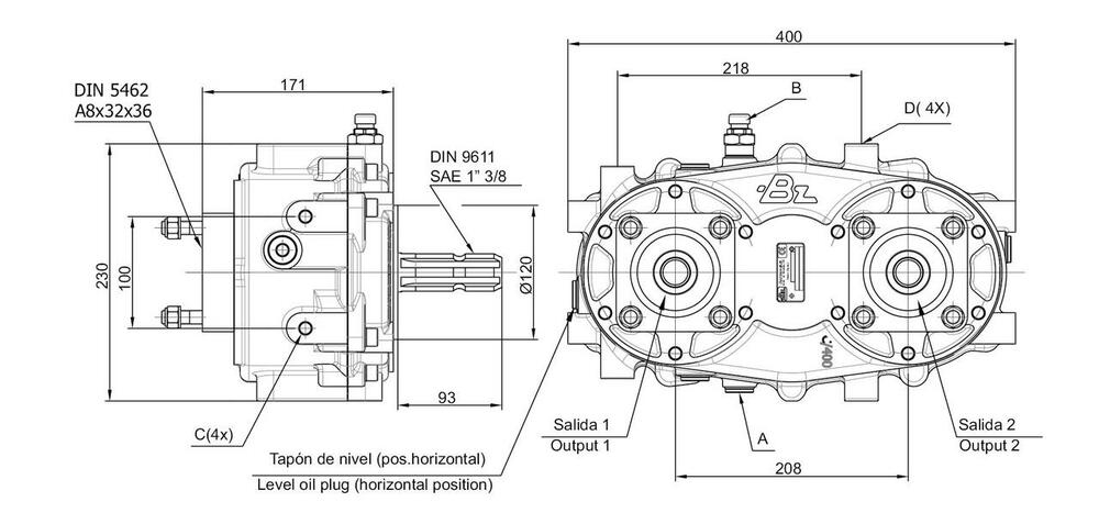 Тракторный редуктор с двумя выходами серия 820 Bezares