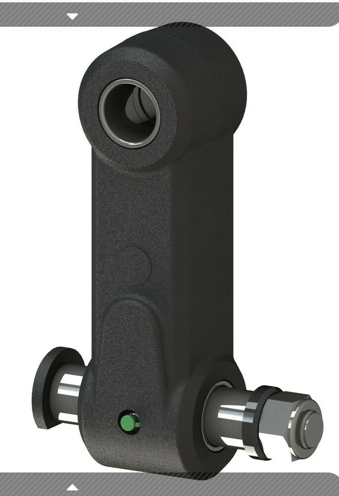 Подвеска FHL 03 верхняя часть выполнена в виде одиночной проушины и совместима с вилкой (двойной проушиной) на рукояти крана. Подвеска разработана для кранов с окончанием рукояти типа вилка шириной 100мм. Диаметр верхнего пальца 45мм.