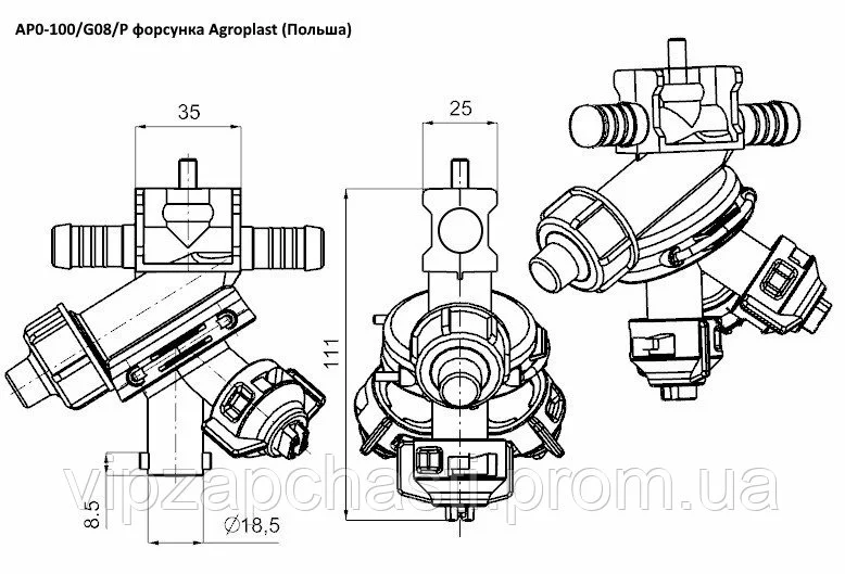 Трех позиционная форсунка Agroplast (Польша) - проходная