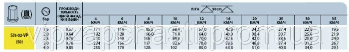 Характеристики распылителей КАС Teejet: