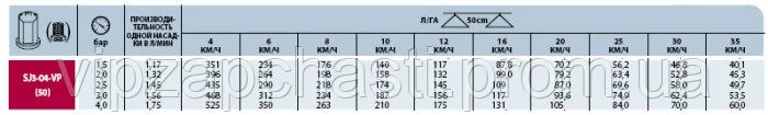 Характеристики распылителей КАС Teejet: