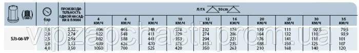 Характеристики распылителей КАС Teejet: