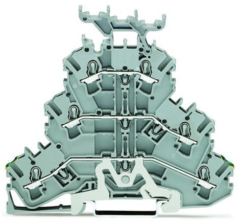 Трехуровневые клеммы для DIN-рейки Wago 2002-3257, Клеммы с заземлением проводника / проходные / проходные клеммы; PE/L/L; с нанесением маркировки; подходят для исполнений Ex e II; для DIN-рейки 35 x 15 и 35 x 7,5; 2,5 мм²; Push-in CAGE CLAMP®; 2,50 mm²; серые.