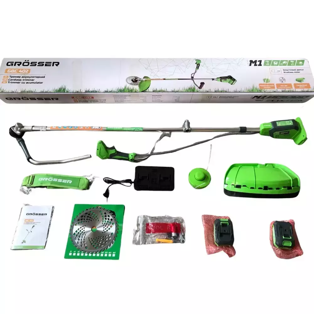Електроінструменти Grosser виготовлені за шведськими технологіями. Grosser працює на ринку 12 років, надаючи професіоналам і любителям ремонту найкраще обладнання. Усі інструменти мають 2 роки гарантії, а наш власний сервісний центр завжди готовий допомогти з обслуговуванням чи ремонтом. Крім того, для вашої зручності, ми пропонуємо безкоштовний обмін товарів, що дозволяє вам бути впевненими у своєму виборі— потужний і зручний інструмент для догляду за вашим садом, газоном та прибудинковою територією. Завдяки високій ємності акумуляторів на 4 Аг і двом в комплекті, ви зможете працювати тривалий час без перерв на підзарядку. Потужність в 20 В і швидкість обертів до 5000 об/хв дозволяють ефективно обробляти навіть густу траву та невеликі кущі.