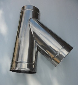 Тройник дымоходный 45° используется для соединения вертикальной и горизонтальной линий дымоотводов и вентиляции. Соединяется между собой и с другими элементами системы дымохода без дополнительного крепления: "труба в трубу".