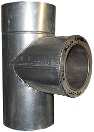 Тройник дымоходный 87° используется для соединения вертикальной и горизонтальной линий дымоотводов и вентиляции. Соединяется между собой и с другими элементами системы дымохода без дополнительного крепления: "труба в трубу".