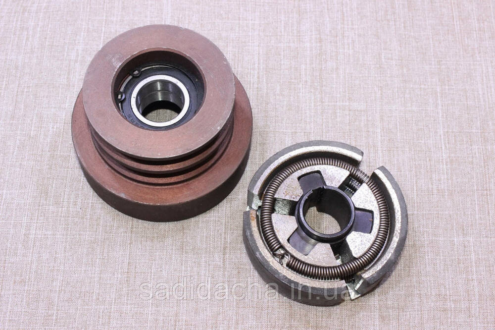 Обгонная муфта сцепления (центробежное сцепление) под шпоночный вал, 2 ремня профиль А. Сцепление-шкив используют в моторах с валом 19,20,25 мм для плавного ременного привода.