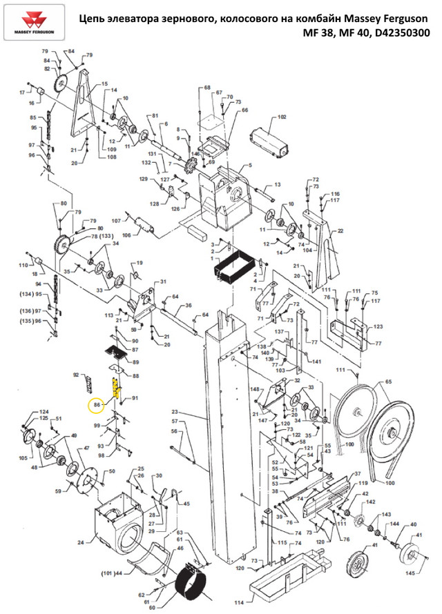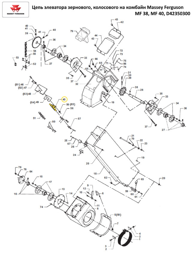 Цепь элеватора зернового, колосового на комбайн Massey Ferguson MF 38, MF 40, D42350300