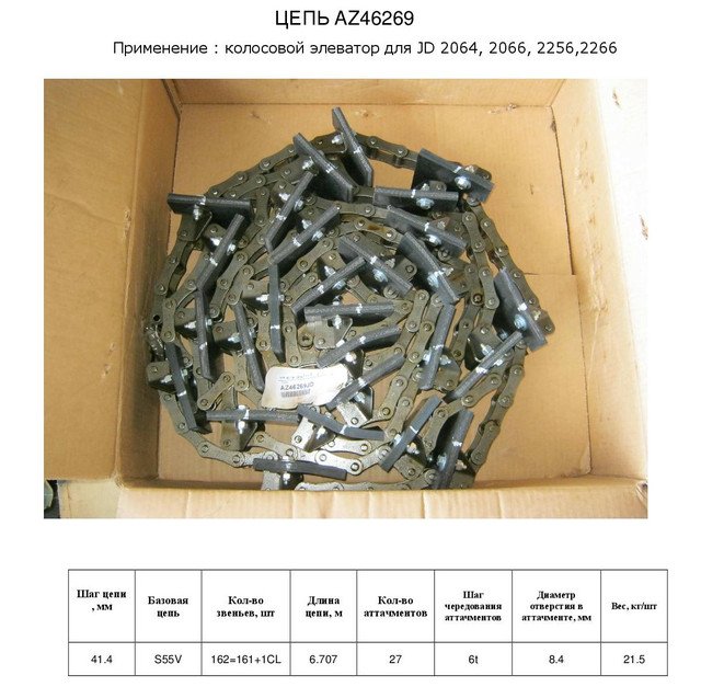 Цепь колосового элеватора John Deere 2066, 2264, 2266, 2066, 2256, 2064, AZ46269
