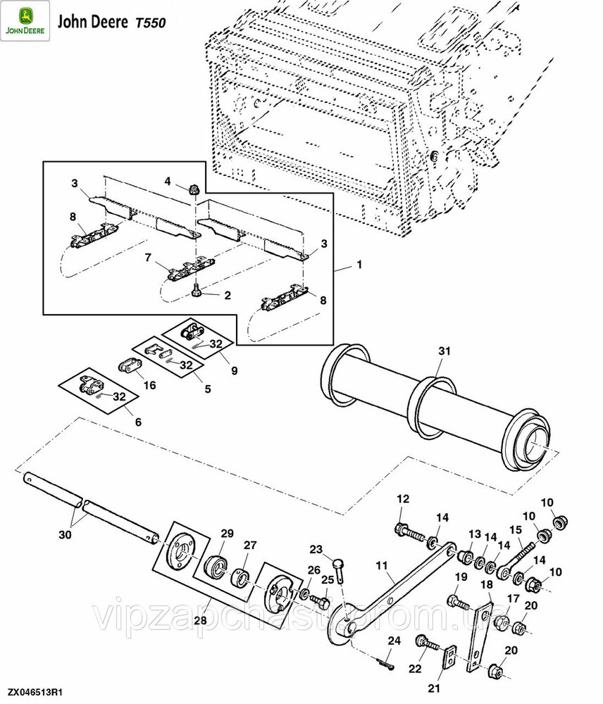 Цепь наклонной камеры John Deere 9680WTS, 9780, T560-670, W560-650, T670, T660, T560, T550, AZ102573
