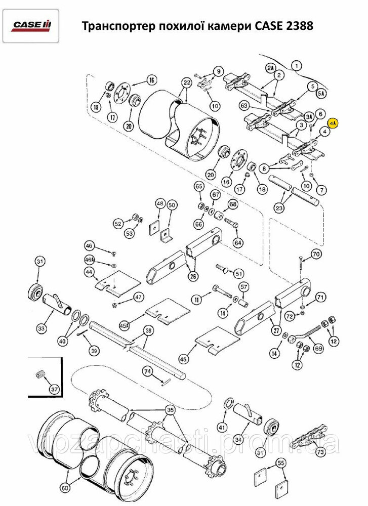 Ланцюг ( цеп ) транспортера похилої камери 60" CASE 2188, бокова 118661A1