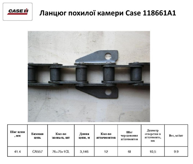 Цепь транспортера наклонной камеры 60" на CASE 5130, 6130, 7130, боковая 118661A1