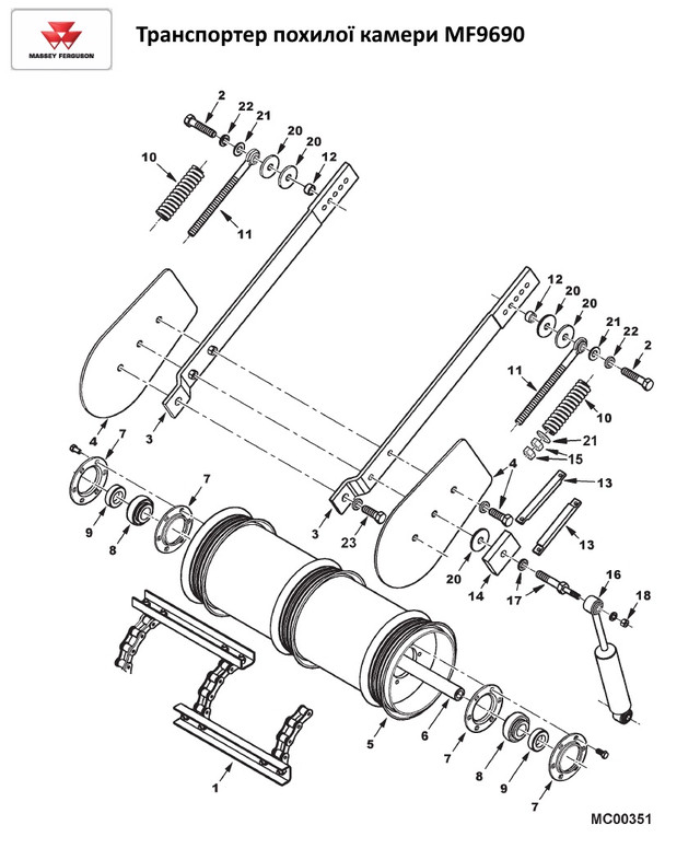 Ланцюг ( цеп ) транспортера похилої камери боковий MF9690, 71449015
