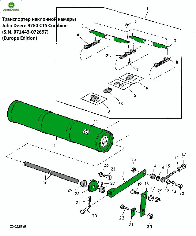 Цепь транспортера наклонной камеры на John Deere 2054, 2056, 2058, 2254, 2256, 2258, 9780 CTS, AZ44912