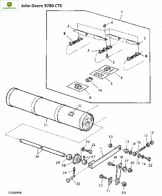 AZ102571 транспортер наклонной камеры John Deere (в сборе) цепи на транспортер наклонной камеры (AZ49435 / AZ63333 / AZ100569 / AZ64052), применение JD W540, W550, JD2054, JD2058, JD 2258, JD9780, T550, C670
