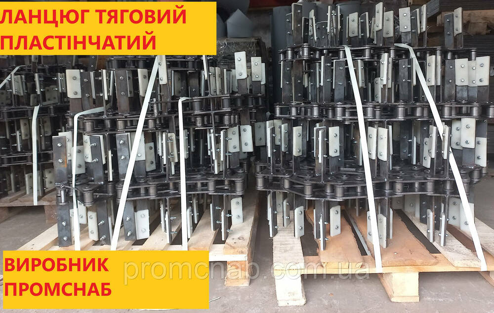 ЧП Промснаб производит цепи для скребковых транспортеров: УТФ-200, УТФ-320, УТФ-500; Цепи КПС-200, КПС-320, КПС-400,  и др. Цепи тяговые пластинчатые М-112-2-100 и др.  Ролики поддреживающие для скребковго конвеера. Колена квадратные СК 200х200, 220х220, 300х300 и другие. Сектора круглые ф150мм, 200мм, 250мм, 220, 300мм, 350мм, 400мм и другие. Вводы одинарные СВО, вводы симетричные СВС, вводы тройные СВД диаметр 200мм, 250мм, 300мм, 350мм, 400мм, 500мм -27град, 36град, 45град, 54град.Трубы самотечные (зернопроводы) ф 200мм, ф220мм, ф 300мм, ф 350мм, фланцы ф300 уг 40, ф220мм, ф200мм, ф300мм в наличии и под заказ любой длины, с фланцами и без фланцев, металл:2мм, 3мм, 4мм; в наличии задвижки 300х300, задвижки реечные с ручным приводом 200х200, 300х300, 400х400, 450х450 и с електроприводом, клапана перекидные, фланцы для зернопроводов любого диаметра, ф 200мм, ф220мм, ф300мм, ф350мм, ф400мм – уголок 25-й, 32-й, 40-й.