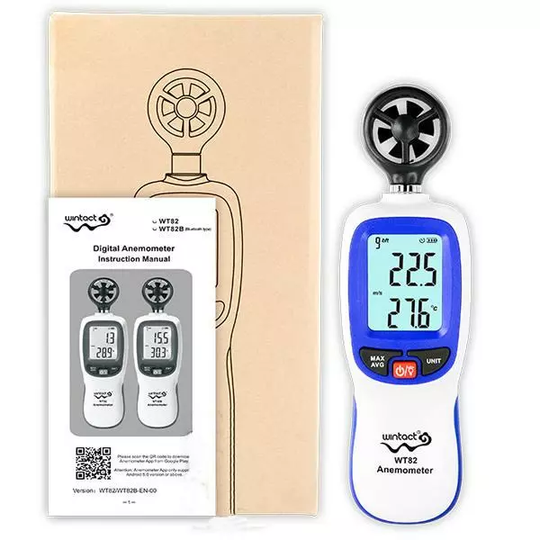 WT82 - крыльчатый анемометр производства компании Wintact, предназначен для измерения скорости воздуха в диапазоне от 0,3 до 30 м/с с функцией расчета среднего значения, удержанием максимального и текущего значений. Измерение температуры выполняется в диапазоне от -10 до 45 ºC.