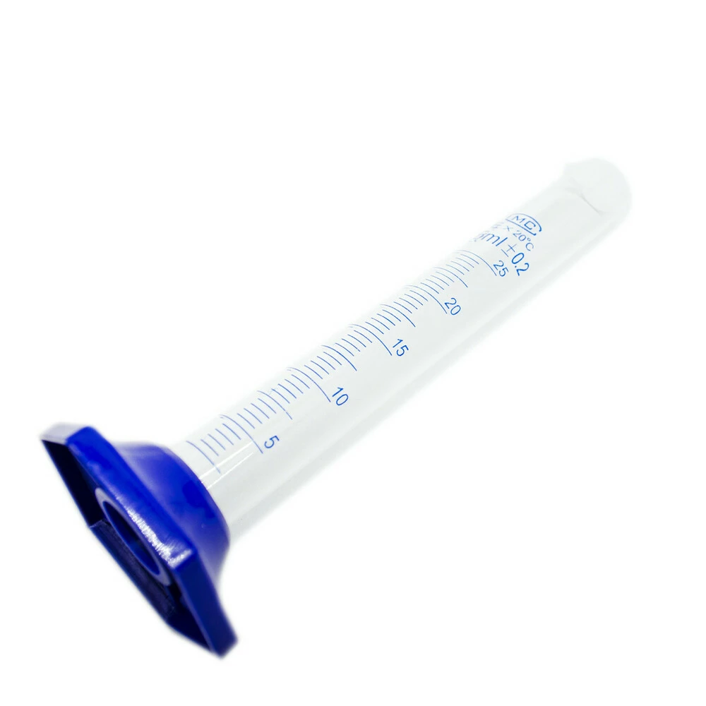 Мерный цилиндр на пластиковом основании с носиком предназначен для определения крепости дистиллят, контроля качества готового продукта и отмеривания определенного объема жидкости. Он изготовлен из прочного стекла на пластиковой подставке. Имеет второй класс погрешности по ГОСТ 1770-74 при температуре измерения 20 ° С. На боковой поверхности цилиндра нанесена шкала, соответствующая емкости цилиндра: 25, 50, 100, 250 или 500 мл.