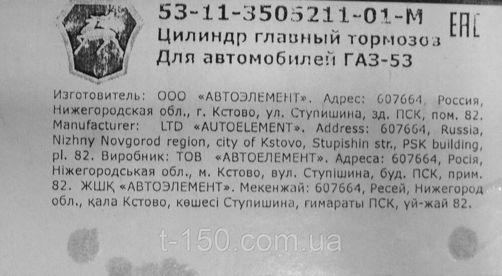 66-11-3505211-01 Цилиндр главный тормозов (для запасных частей)
