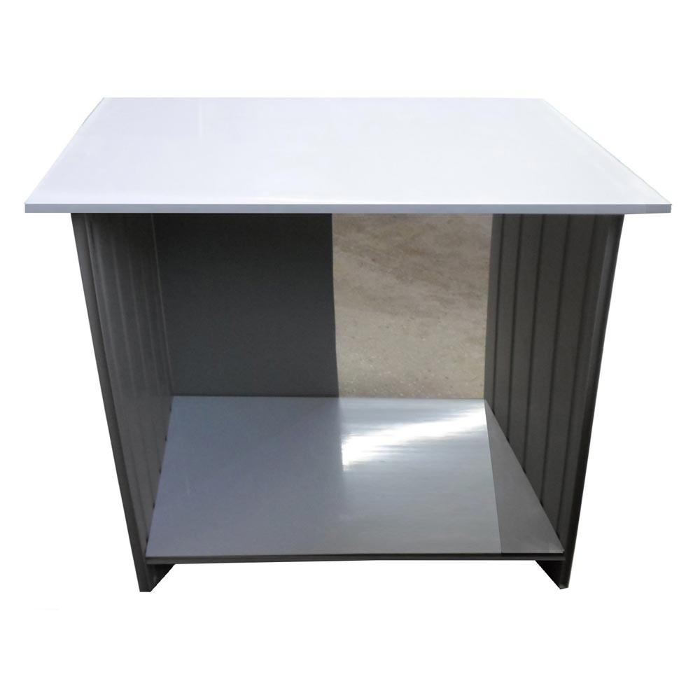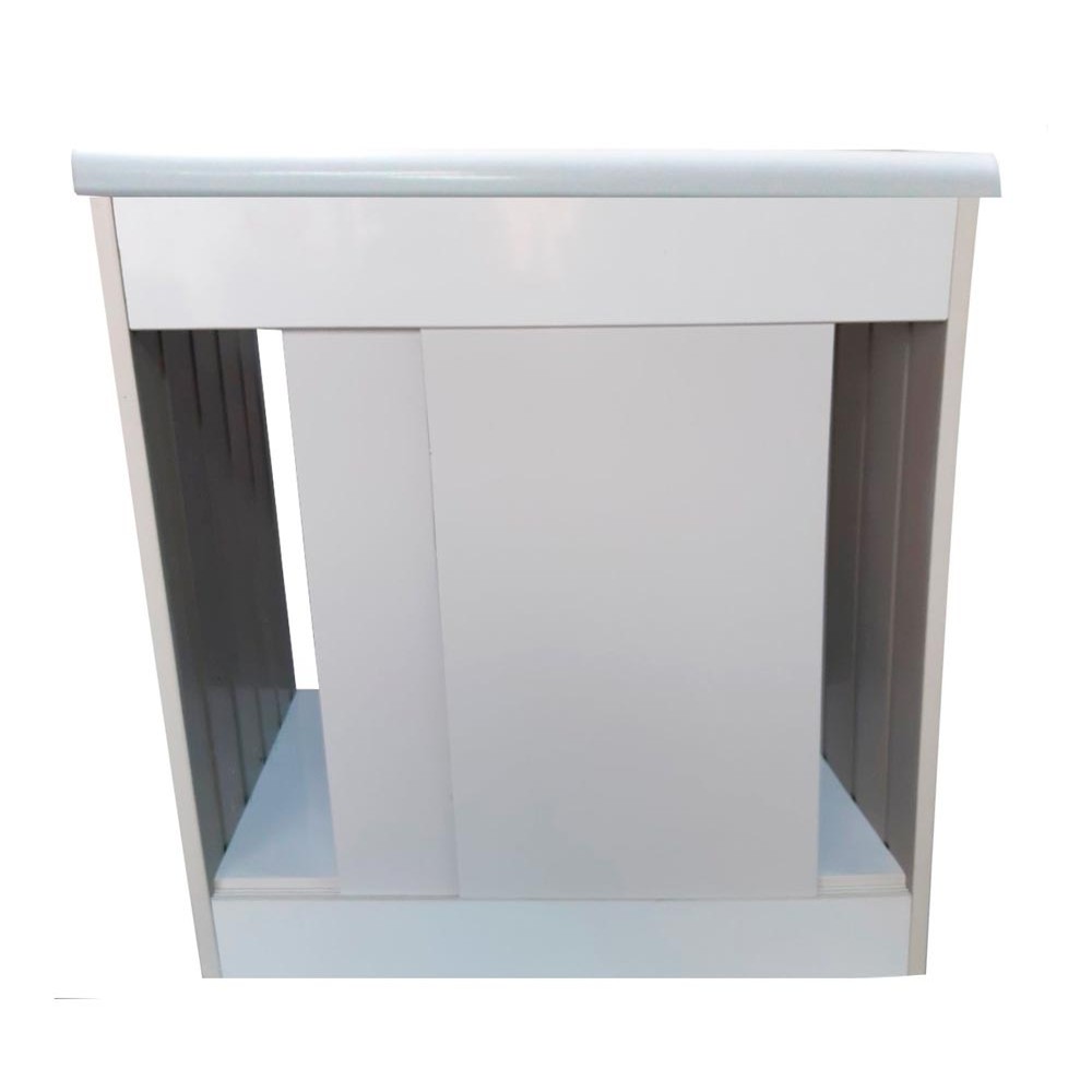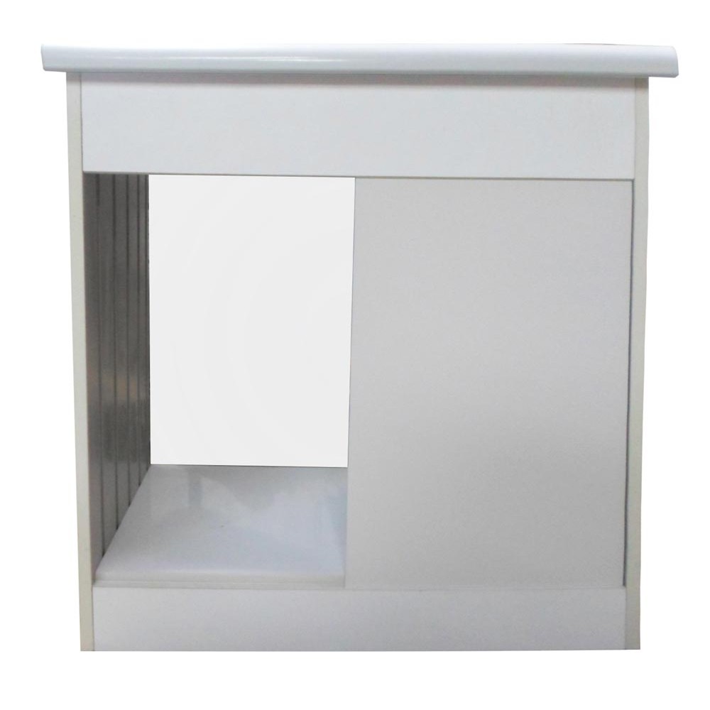 - 52 см. Высота - 85 см.Столешница пластиковая белого цвета.Корпус изготовлен из пластика, толщиной 20 мм, то есть 2