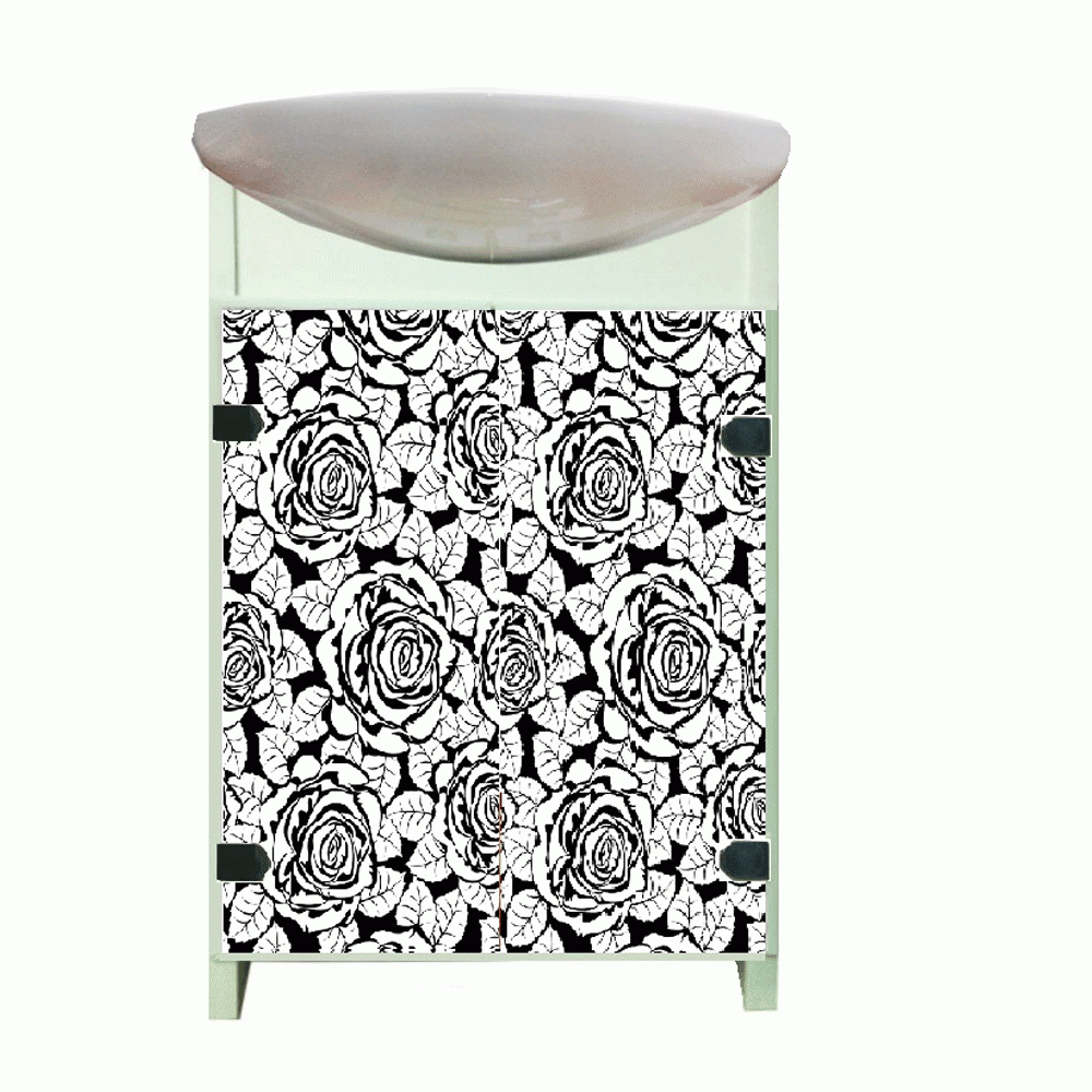 Мебель из пластика это как раз то что нужно для долгосрочной службы мебели в ванной комнате. Боковые стороны тумбы белые.  Для любителей классики, стиль "черное и белое".  Изображение - черная роза.Тумба выполнен полностью из пластика. Укомплектован керамической раковиной Cersanit como 50см