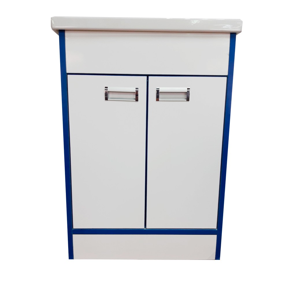 Мебель из пластика это как раз то что нужно для долгосрочной службы мебели в ванной комнате. Тумба выполняется белого цвета, торцы синего цвета
