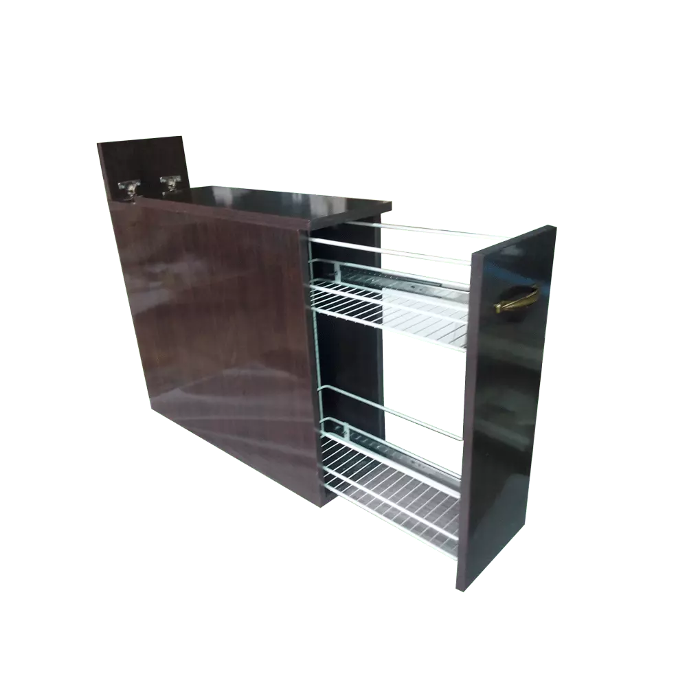 Тумба Mikola-M универсальная для туалета и ванной венге сделана полностью из ДСП и покрыта тремя слоями прозрачного лака.Дверь в тумбе выкатывается и имеет 2 горизонтальных решетчатых отделения. В них можно складывать как бытовую химию и принадлежности, так и бельё для стирки. Например, на верхнюю полку для стирки цветного, на нижнюю белого... Тумба, без ножек, ставится на пол у стены или прилегающей мебели. Тумба покрыта тремя слоями лака.