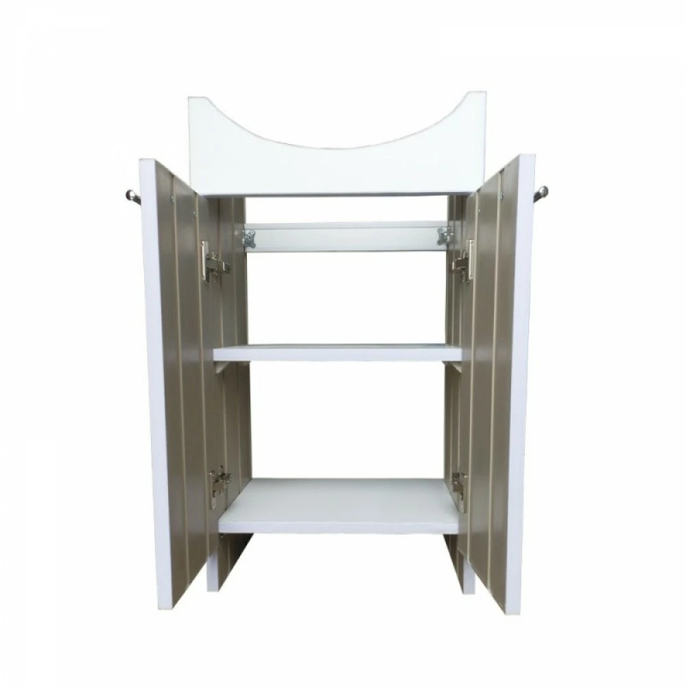 Тумба полностью сделана из пластика и не боится повышенной влажности в ванной комнате, поверхность имеет гладкую поверхность что позволяет легко ухаживать за тумбой в процессе эксплуатации. Окантовка белого цвета. Просто "Классика". Две распашные дверцы. Горизонтальная полочка делит пространство на 2 части. Овальный керамический умывальник входит в комплектацию.