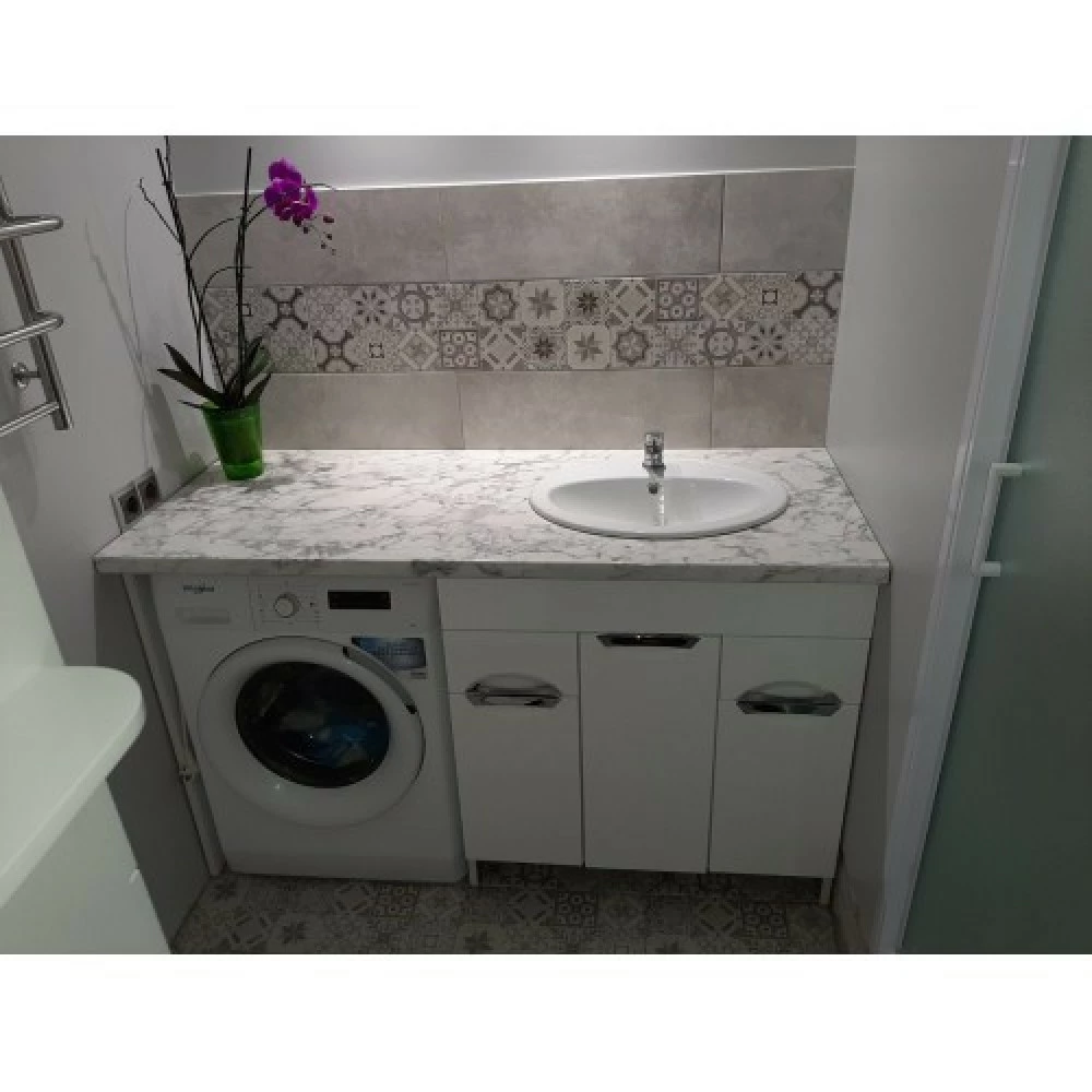 Тумба под стиральную машину с умывальником - отличный вариант для экономии места.Компактное расположение, влагостойкость, практичность в использовании, наличие скрытого ящика - всё это будет радовать Ваш глаз долгие годы.Столешница и фасад изготовлены из МДФ, а корпус - из пластика. Такой вариант тумбы всегда актуальный, стильный и впишется в любой интерьер.