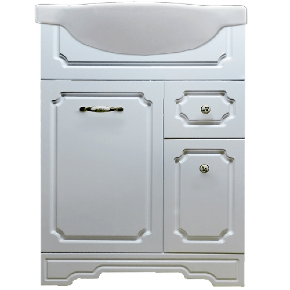 Тумба собрала в себе практичность корпуса из пластика и красоту элегантного фасада из МДФ.Мебель из пластика - это как раз то, что нужно для долгосрочной службы мебели в ванной комнате. Ее легко мыть.Тумба белая комплектуется умывальником. Фрезерованные линии на фасаде с окрашенных в три слоя МДФ.Есть 1 верхний выдвижной ящик для женских мелочей и косметических аксессуаров. Распашные дверцы с полочкой внутри можно использовать для хранения моющих средств.Высота - 80 см.Ширина - 80 см.Глубина - 30 см.