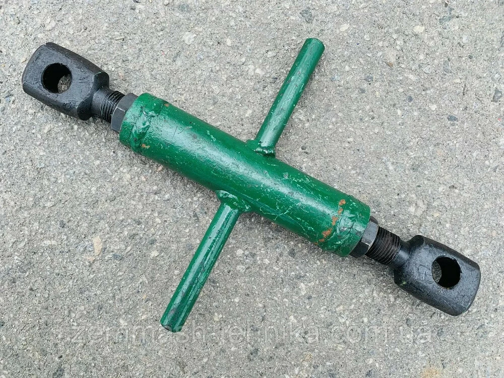 Тяга (винт) регулировки глубины прикатывающего катка в сборе АГ. УДА. АГД. Тяга регулировки глубины устанавливается на снице, катках бороны и состоит из гайки центральной в которую вкручивается винт с левой резьбой и правой.