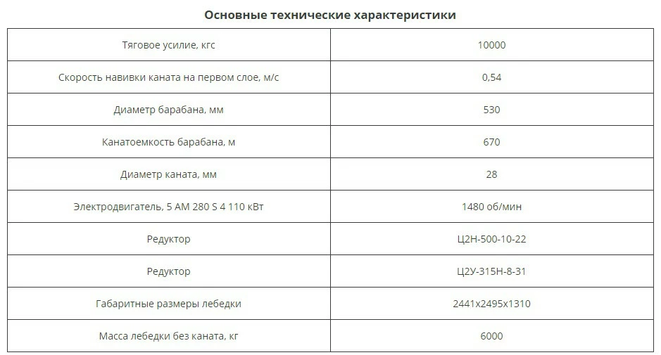 При выборе лебедки следует обязательно рассчитывать ее тяговое усилие и, опираясь на данный параметр, выбирать устройство. Тяговое усилие лебедки ТЭЛ-10Б равняется 10000 кгс. При корректном выборе и эксплуатации оборудования, оно будет исправно служить на протяжении долгих лет.