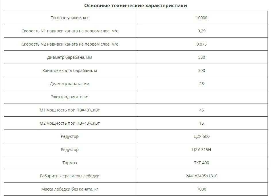 Выбор лебедки основывается на ее рабочих характеристиках. К основным параметрам лебедки относяится ее тяговое усилие. Для сери ТЭЛ-10Д оно равняется 10000 кгс.