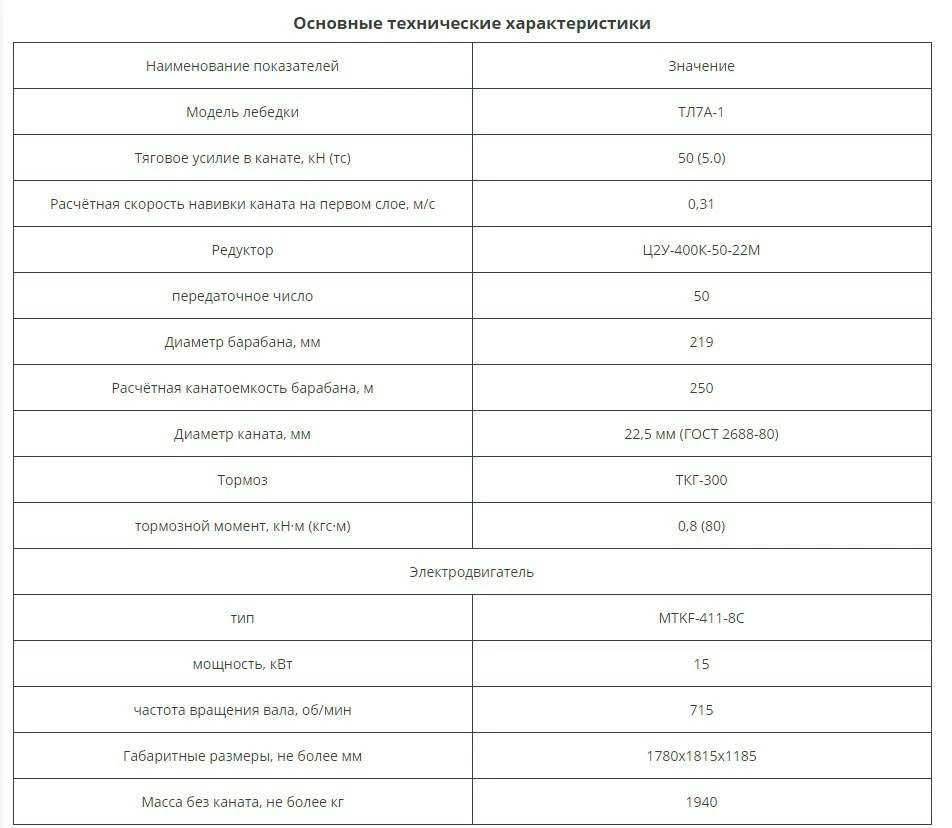 Тяговая лебедка серии ТЛ-7А-1 предназначена для установки в качестве тягового механизма на производстве или при строительстве сооружений или агрегатов. Конструкция лебедки подразумевает ее эксплуатацию в легком режиме при ПВ=25%. Агрегат устанавливают на горизонтальную поверхность, он позволяет поднимать грузы массой до 5 тонн.