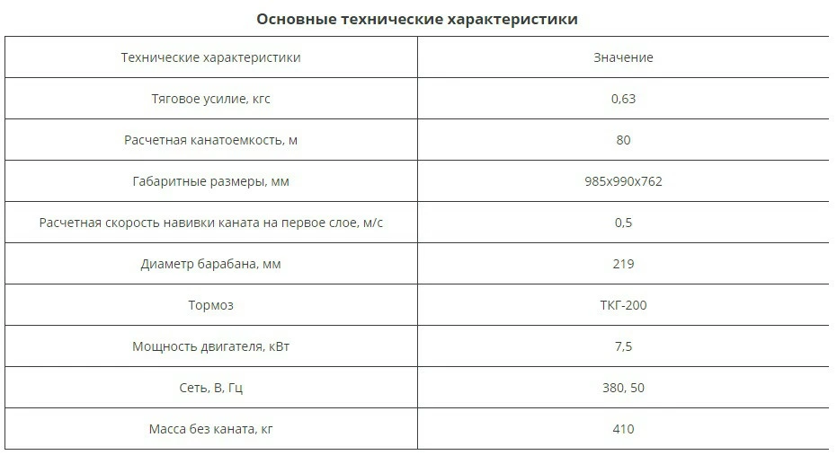 • Канатоемкость - 80.0 (м)