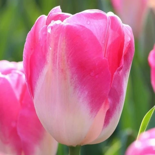 Нежный бело-розовый тюльпан Триумф Dynasty (Династия) со слегка волнистыми лепестками отлично смотрится на всех весенних клумбах, в садах, парках и городских скверах. Часто его выбирают флористы для создания изящных композиций.
