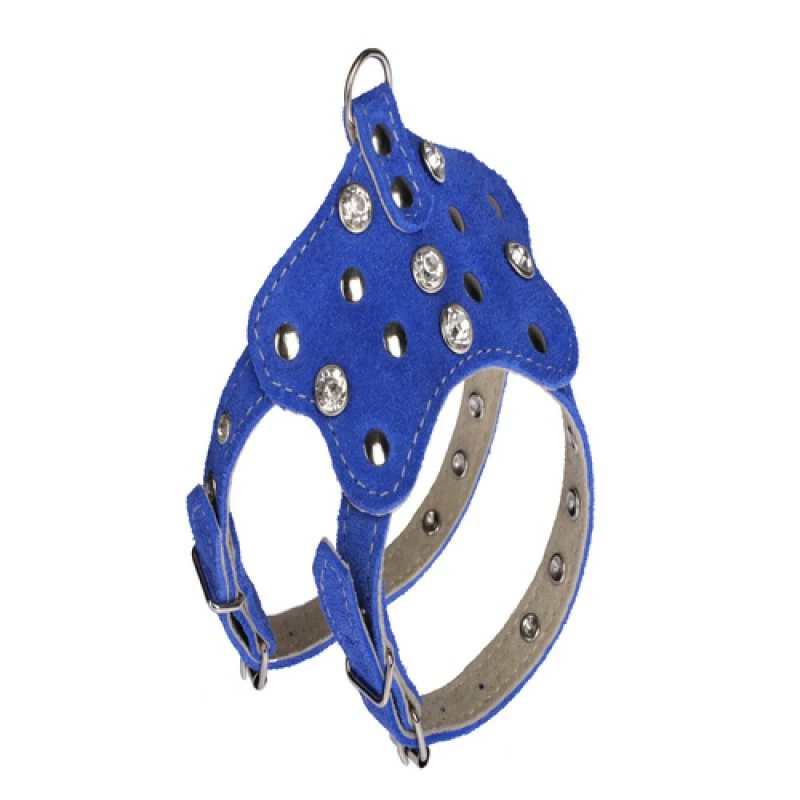 Велюр: Комплект подвійний для декоративних порід прикрашений стразами. Матеріал - замшева шкіра; шкіра спилок.