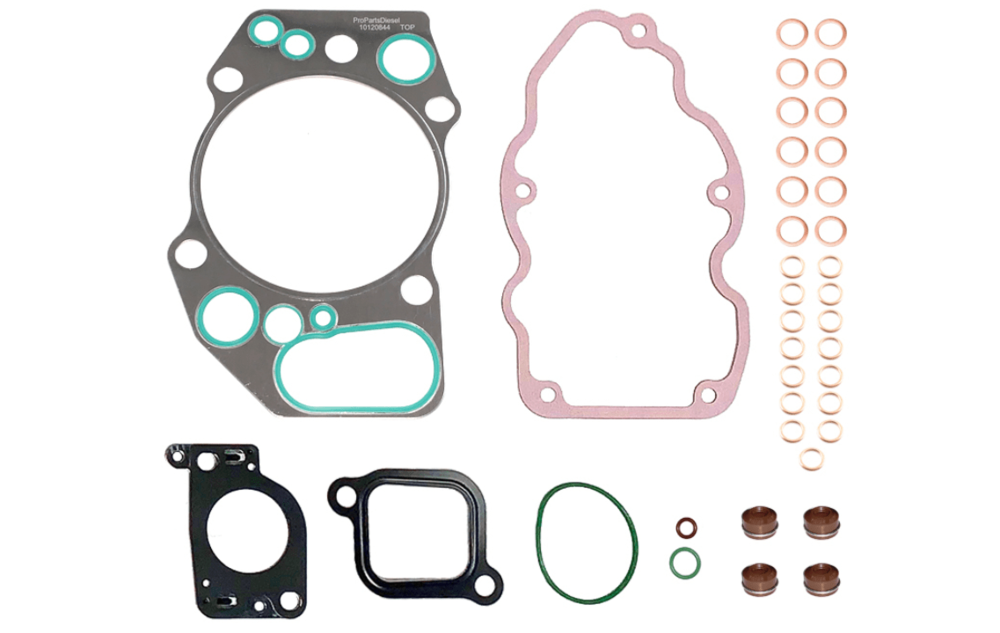 10120844-K1 Верхній комплект прокладок для двигуна Liebherr D934, D936. Включає в себе ущільнення, необхідні при ремонті головки блоку циліндрів (ГБЦ). Усі манжети, ущільнення та прокладки, що відносяться до ГБЦ, входять до такого набору. Для заміни деталі або капітального ремонту двигуна рекомендуємо скористатися повним комплектом.