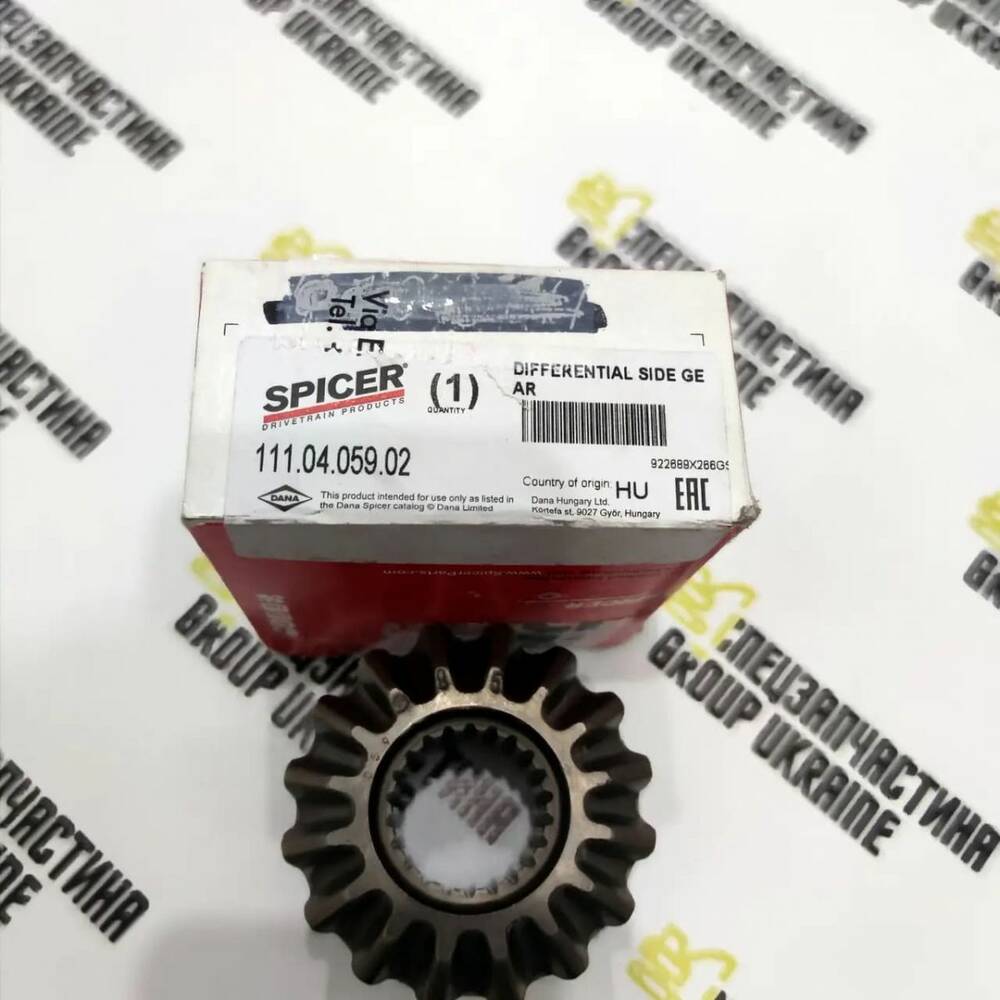 111.04.059.02 Бічна шестерня диференціала Z16 Дана Спайсер. Можна купити у Києві безпосередньо з нашого складу. Також у Києві можна виконати ремонт мосту та трансмісії, а також купити будь-які запчастини Dana Spicer. Якщо потрібних вам запчастин не виявиться на складі, ми їх доставимо від виробника в найкоротший термін.