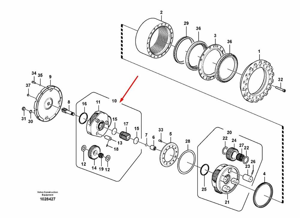 14505737 Перша планетарна передача Volvo EC210. Купити запчастини для спецтехніки Volvo можна у Києві безпосередньо з нашого складу. Всі запчастини в мости та КПП ми поставляємо безпосередньо від виробника. Ремонт мостів та трансмісії проводить наш сервісний центр з ремонту спецтехніки та двигунів (Київ, Україна). Це повний редуктор першого ряду сателітів із проміжною шестернею, що використовується в трансмісіях екскаваторів відомої марки VOLVO.
