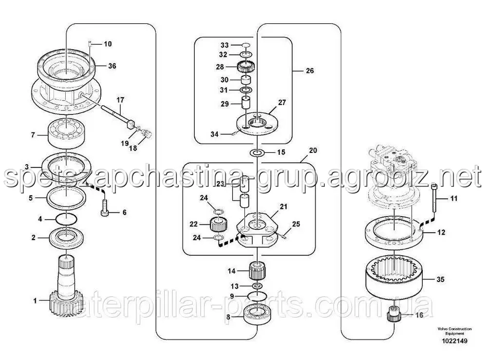 Планетарна передача бортового редуктора вирівнює момент, що крутиться, і передає оптимальні обороти на провідні колеса. VOE 14516445 Редуктор поворотний застосовується в системі повороту платформи на гусеничних екскаваторах Volvo EC210B, EC210.