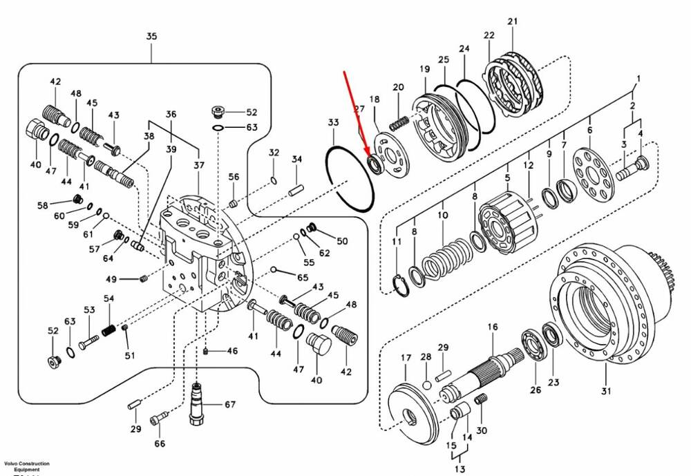 Підшипник валу ходового двигуна VOLVO EC140D, EC140E, EC200D, EC210B, EC210C, EC210D, EC220D
