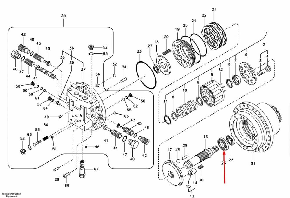Підшипник валу ходового двигуна VOLVO EC140B, EC140D, EC140E, EC160B, EC160C, EC180B, EC180C, EC180D, EC200B, EC200D, EC210B, EC212D , EC240C, ECR235C, ECR235E, FC2421C