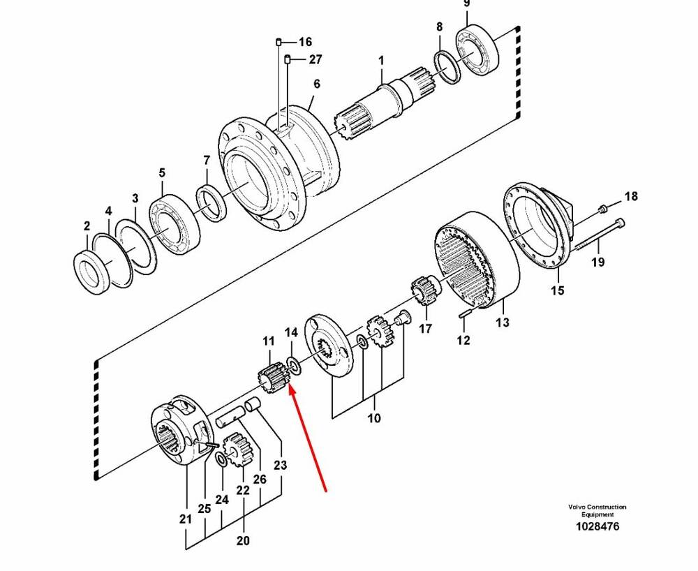 Сонячна шестерня в редукторі повороту на екскаватор Volvo EC330, EC350, EC360, EC700