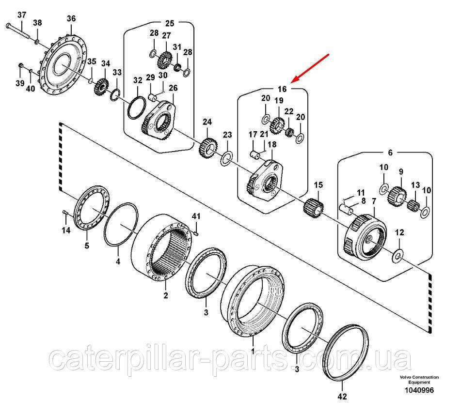 Планетарна передача (водило сателітів, сателіти, сателіт) бортового редуктора (редуктора ходу) VOLVO EC300