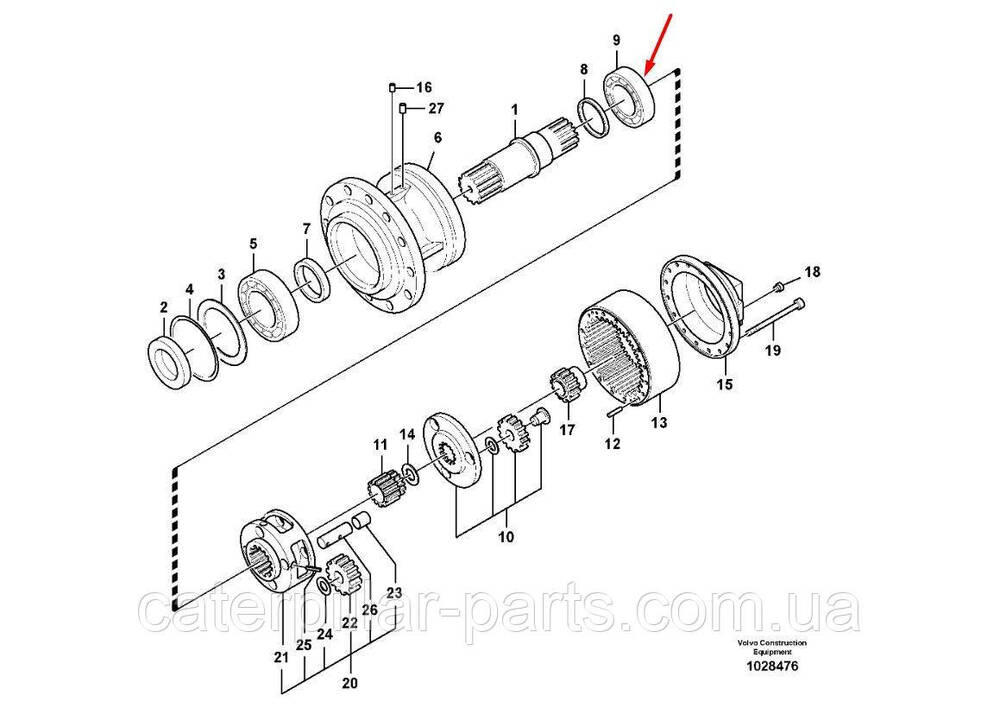 14640028 Підшипник верхній в редуктор повороту на екскаватор Volvo EC 240, 290, 330, 340, 350, 360, 380, 700