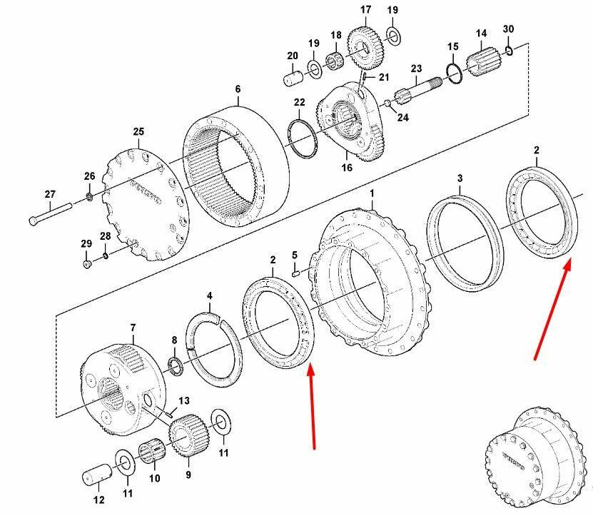 11.   [1] Корпус другої планетарної передачі редуктора ходу без шестерень VOLVO ec210