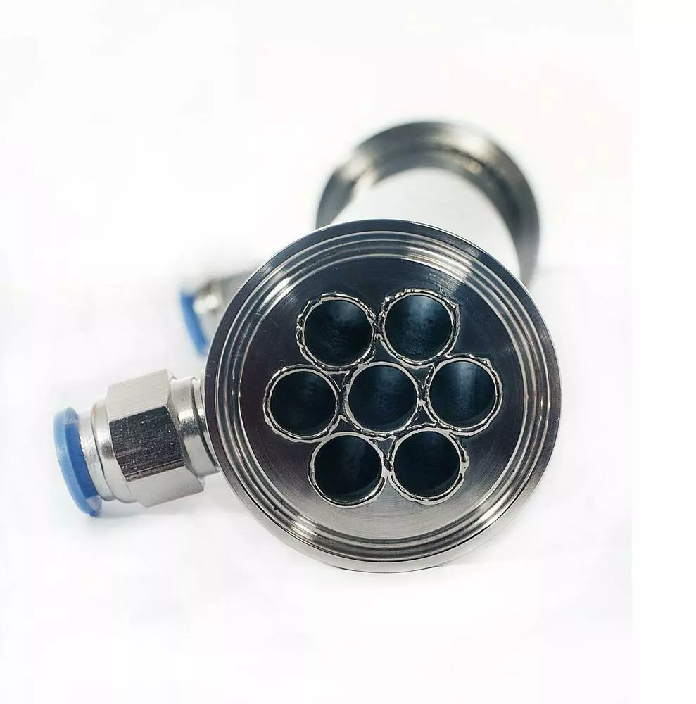 Техн. Характеристики:Діаметр труби 38ммКлампи 1,5"Висота дефлегматора 200 мм, 7 отворів по 10мм. 3 перегородкиШтуцера для підведення води під швидкоз'єми 1/4". Під шланг 10ммНержавіюча сталь AISI304Потужність дефлегматора (колона працює "на себе" не пропускаючи пар) ≈2000 Вт **потужність залежить від температури подачі води, способу підключення, швидкості подачі води та інших факторів Параметри з упаковкою (Д/Ш/В, вага):27/9/8см., 0,6 кг